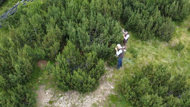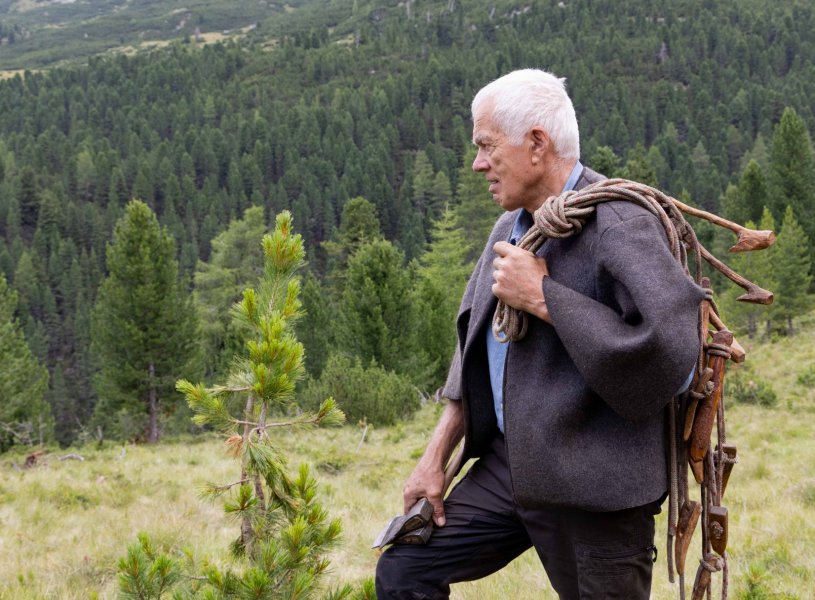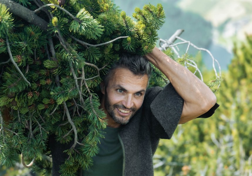 Visto che i mughi spesso crescono in zone difficilmente accessibili, i fasci di rami devono essere portati al punto di raccolta a spalla: un lavoro faticoso che richiede spalle e gambe forti.