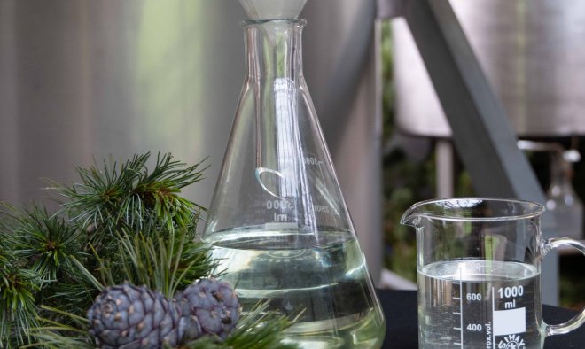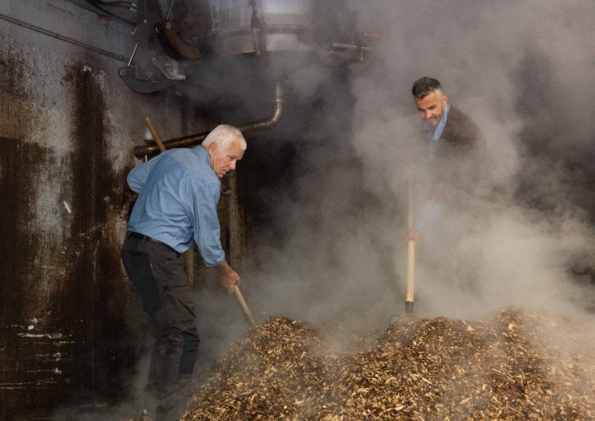 Dopo circa sei ore quindi il prezioso olio eterico è estratto dagli aghi. I paioli vengono vuotati, e si ricomincia da capo con una nuova distillazione. Gli scarti sono utilizzati per scaldare il paiolo.